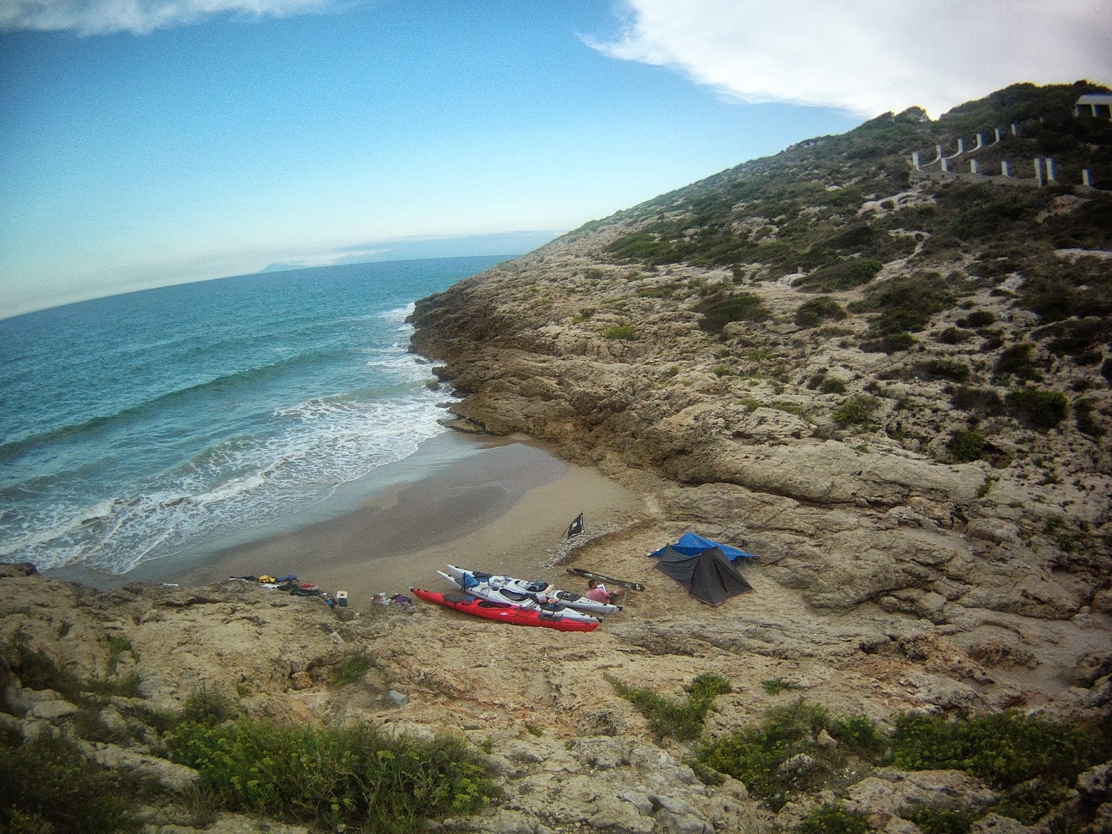 Hola! Hoy actualizamos desde San Juan de Alicante gracias a que los primos de Carlos viven aquí i se han portado estupendamente con nosotros. Ayer salimos de Calpe después de haber descansado de maravilla debajo de un techo (el vestuario de caballeros del club náutico) y pudimos darle cañita hasta Vilajollosa en una etapa muy chula. Lo mejor de la etapa de ayer fue el paso por el morro de tots que tenia unas vistas muy chulas con una especie de mini cascada que caía de la roca al mar y la llegada a la bahía de Benidorm con sus impresionantes rascacielos, visto desde el mar es mucho mas bonito, ademas estaba nubladísimo y fueron unas vistas muy chulas. Viento favorable y buenas olas para poder ir disfrutando de los kilómetros. Llegamos a la cala del conill en Vilajollosa que era una cala naturista también y disfrutamos de la naturaleza como nuestras madres nos trajeron al mundo en una cala preciosa. La noche no fue mal porque aunque nos habíamos resguardado bien en una cuevecita de la cala, no nos llovio. Pero los moskitos siempre están ahí para joderte la noche.